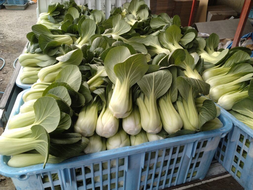 私どものチンゲンサイは露地のトンネル栽培になるので一般的なハウス栽培の産地にくらべてじっくりゆっくり生育させます。施設に投資するとどうしても回転を上げないといけなくなって連作がすすむことや、温度、水、肥培管理も過保護になるため、フワッと大きくなって見かけはサイズ感があっても重量がのりません。弊社はそういったデメリットがないため、形も大きさもそろいやすく、重量ものるようです。(まあ、トンネル設置の手間はかかるんですが・・・)出荷規格をLサイズに一本化しているため、販売担当者も売りやすいとのことでした。あまりにも褒めてくれるので、最近は少しプレッシャーになってきているカモ。